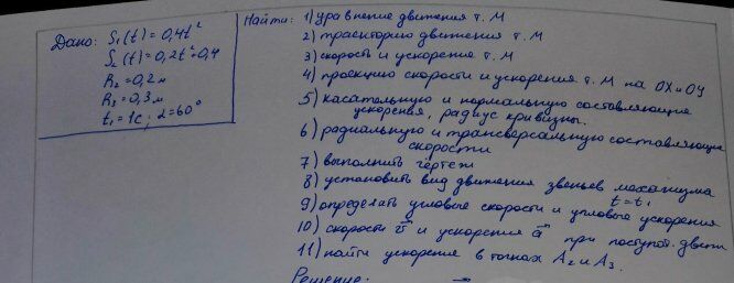 ДЗ 1: Кинематика точки и простейших движений твердого тела вариант 2