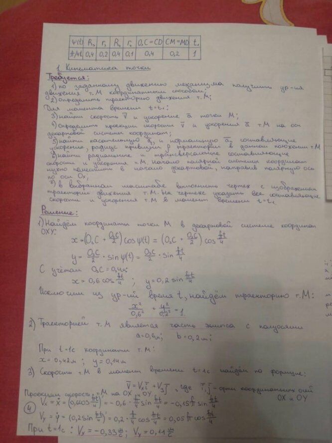 ДЗ 1: Кинематика точки и простейших движений твердого тела вариант 10