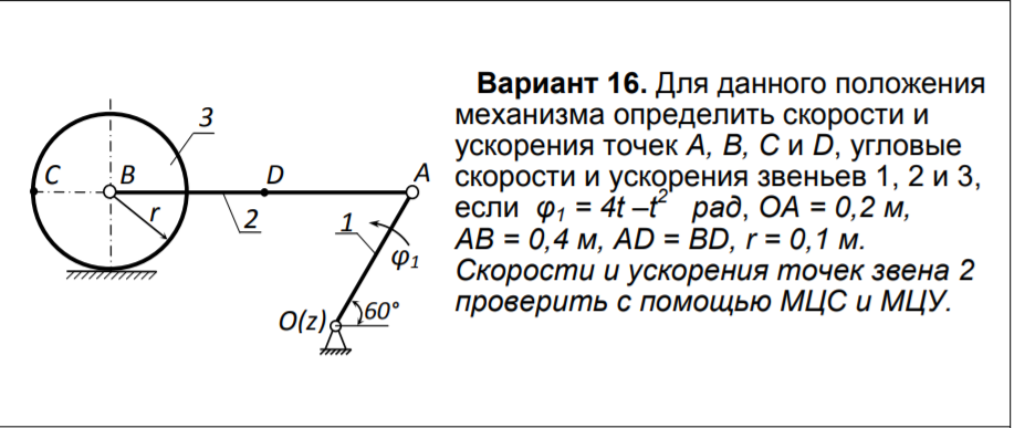 ДЗ 2: Кинематика плоского движения твердого тела вариант 16