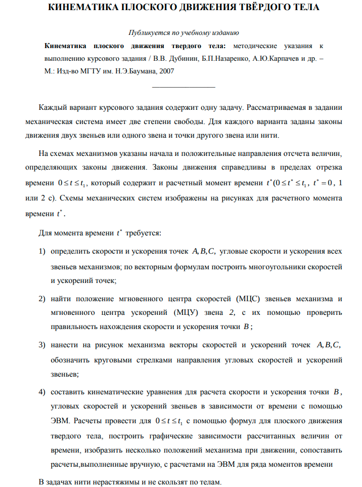 Для студентов МГТУ им. Н.Э.Баумана по предмету Теоретическая механикаКинематика плоского движения твердого телаКинематика плоского движения твердого тела