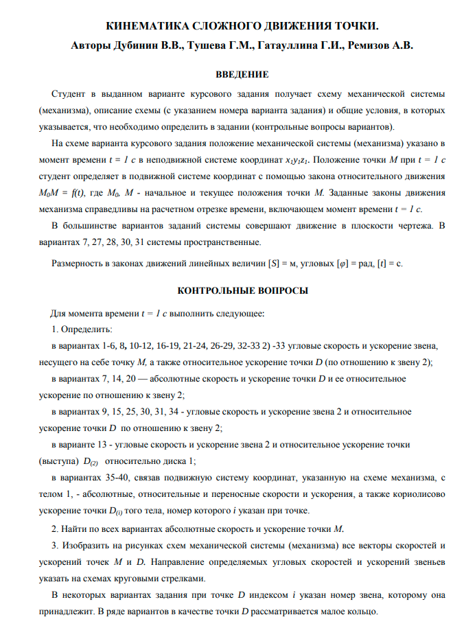 Для студентов МГТУ им. Н.Э.Баумана по предмету Теоретическая механикаКинематика сложного движения точкиКинематика сложного движения точки