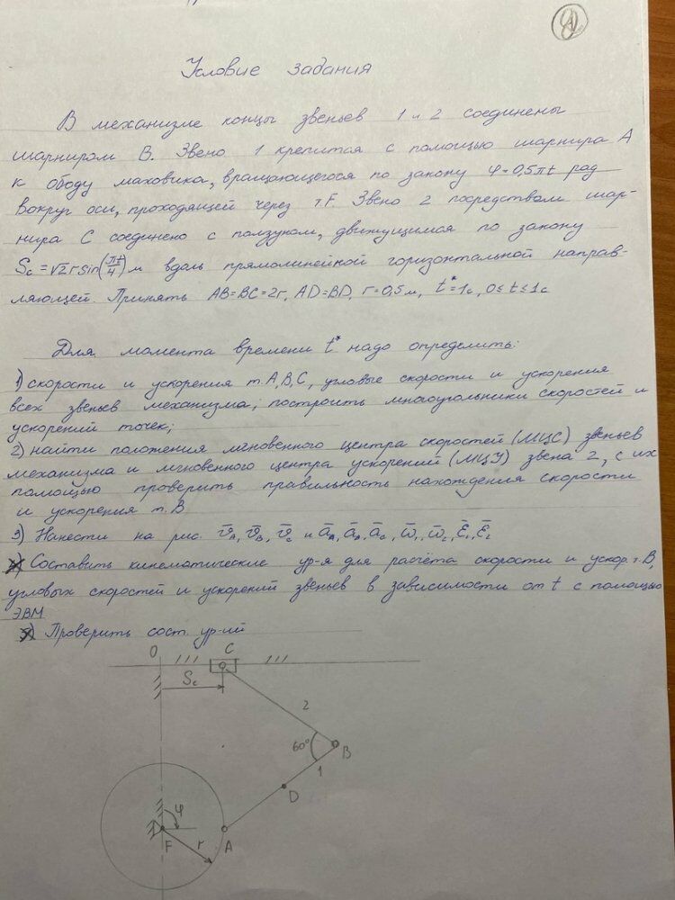 ДЗ 2: Кинематика плоского движения твердого тела вариант 4