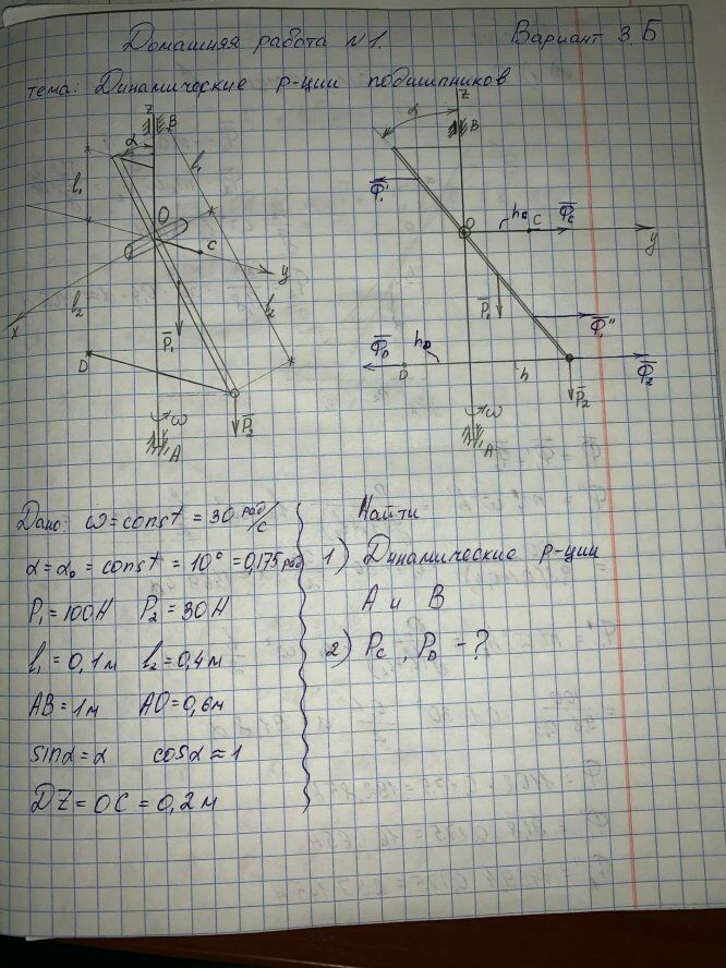 ДЗ 1: Динамические реакции подшипников вариант 3
