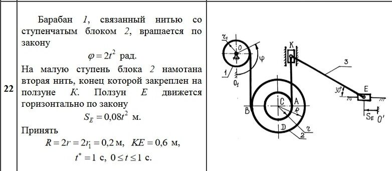 ДЗ 2: Кинематика плоского движения твердого тела вариант 22