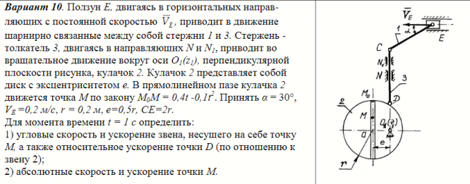 ДЗ 3: Кинематика сложного движения точки вариант 10