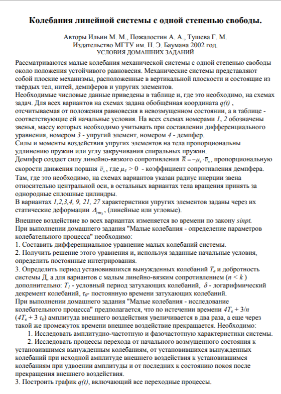 Для студентов МГТУ им. Н.Э.Баумана по предмету Теоретическая механикаКолебания линейной системы с одной степенью свободыКолебания линейной системы с одной степенью свободы