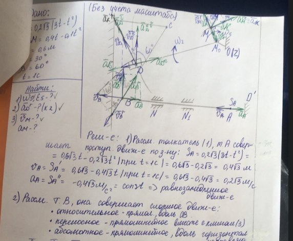 Типовой расчет по теоретической механике, "Кинематика сложного движения точки", зачтено