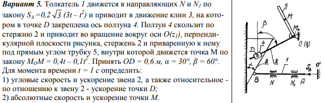 ДЗ 3: Кинематика сложного движения точки вариант 5
