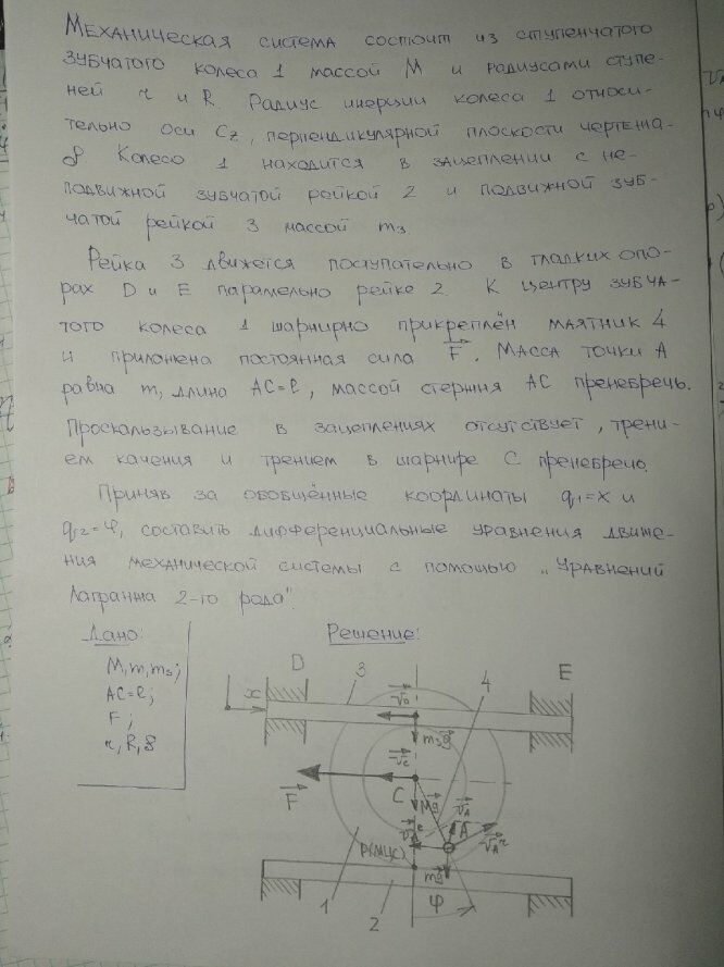 ДЗ 3: Уравнения Лагранжа 2-го рода вариант 7