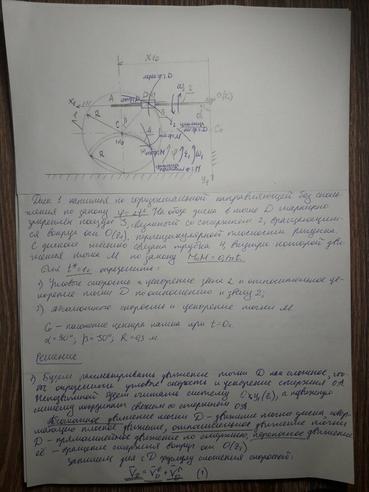 "Кинематика сложного движения точки" - ДЗ третье. Все очень подробно описано. Преподаватель сразу отметил сдачу ДЗ.Характеристики домашнего задания