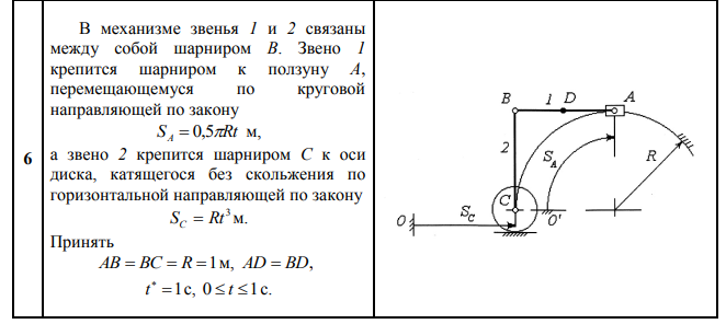 ДЗ 2: Кинематика плоского движения твердого тела вариант 6
