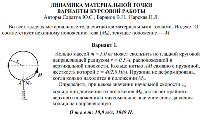 ДЗ 1: Динамика материальной точки вариант 1