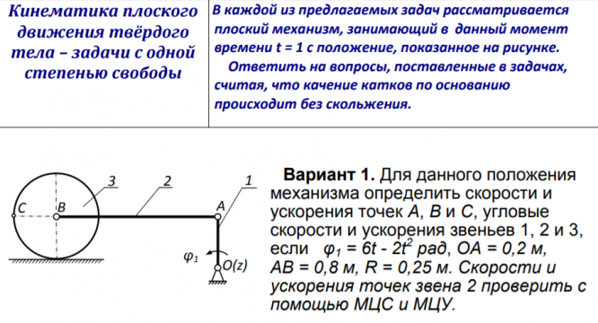 ДЗ 2: Кинематика плоского движения твердого тела вариант 1