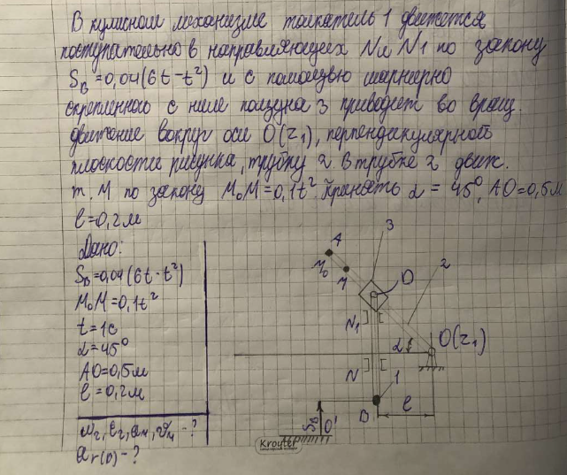 ДЗ 3: Кинематика сложного движения точки вариант 1