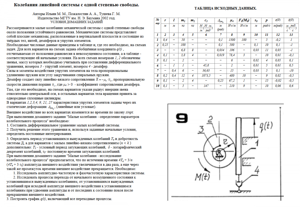 Для студентов МГТУ им. Н.Э.Баумана по предмету Теоретическая механикаКолебания линейной системы с одной степенью свободыКолебания линейной системы с одной степенью свободы