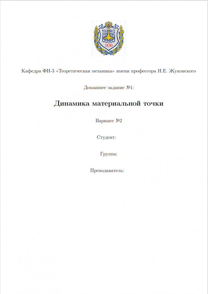 Для студентов МГТУ им. Н.Э.Баумана по предмету Теоретическая механикаДинамика материальной точкиДинамика материальной точки