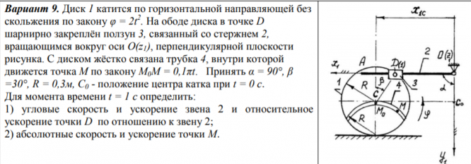 ДЗ 3: Кинематика сложного движения точки вариант 9