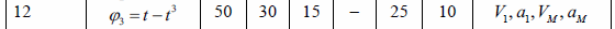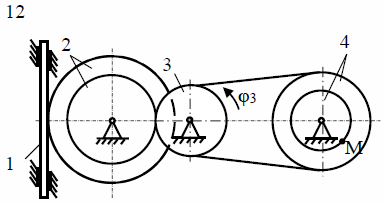 Механизм состоит из рейки 1, колес 2, 3, 4, находящихся в зацеплении или связанных ременной передачей (рис. 10 а, б, в). Исходные данные приведены в табл. 5. По заданному уравнению движения ведущего звена механизма определить в момент времени t1 = 1 c величины, указанные в последнем столбце табл. 5. Считать, что скольжение в ременной передаче, в точке контакта колес, в точке контакта колеса и рейки отсутствует.