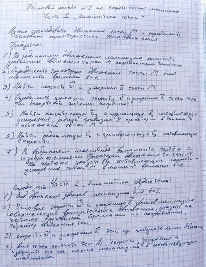 ДЗ 1: Кинематика точки и простейших движений твердого тела вариант 5