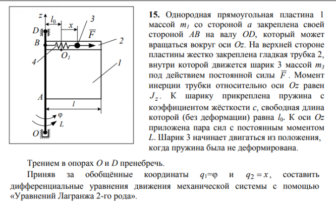 ДЗ 3: Уравнения Лагранжа 2-го рода вариант 15