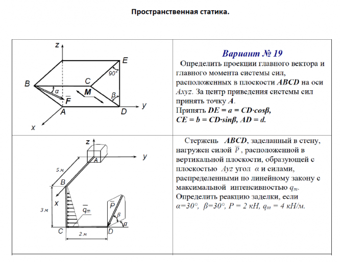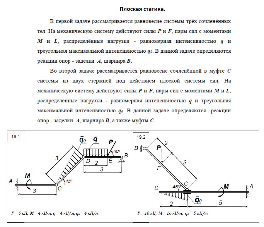 ДЗ 4: Плоская и пространственная статика вариант 19
