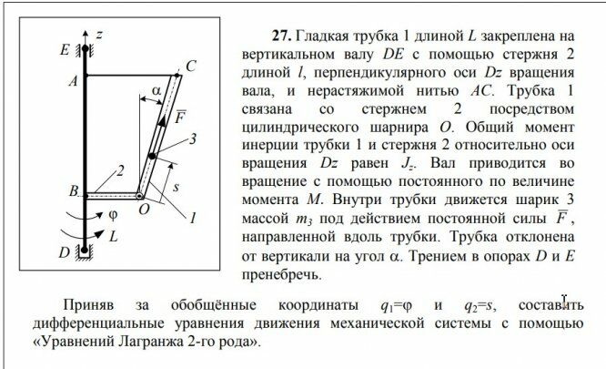 ДЗ 3: Уравнения Лагранжа 2-го рода вариант 27