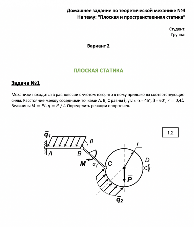 Файл содержит в себе полное правильное решение ДЗ №4 (все 4 задачи в одном файле) варианта №2 по теоретической механике, которое проверил и принял преподаватель