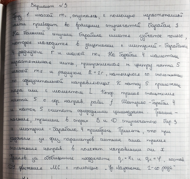 ДЗ 3: Уравнения Лагранжа 2-го рода вариант 3