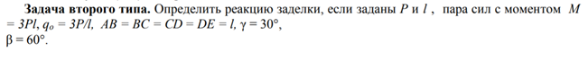Задача второго типа. Определить реакцию заделки, если заданы Ри/, пара сил с моментом М