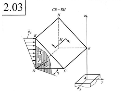 При этом в вариантах залач, в которых сила О приложена в точке Г), принять точку Г) лежащей на середине соответствующего отрезка. Принять как заланные величины Ри /, при этом (= 22 = == / М= 0,5Р/ В залачах ва- риантов 1, 2, 4, 6, 7, 8. 12, 13, 16, 18, 20, 21, 23, 24, 25 принять АВ = 2ВС = 21 Во всех вариантах приняъ а=у= 30°. В-о= 60°, при этом углы а и В отсчитываются в вертикальных плоскостях, а углы у и Ф - в горизонтальных. Задача второго типа. Определить реакцию заделки, если заданы Ри/, пара сил с моментом М = ЗР!, 4» = ЗРИ, АВ = ВС = СБ = БЕ 1= 30°, В= 60°..