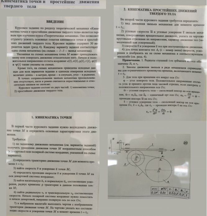 ДЗ 1: Кинематика точки и простейших движений твердого тела вариант 20