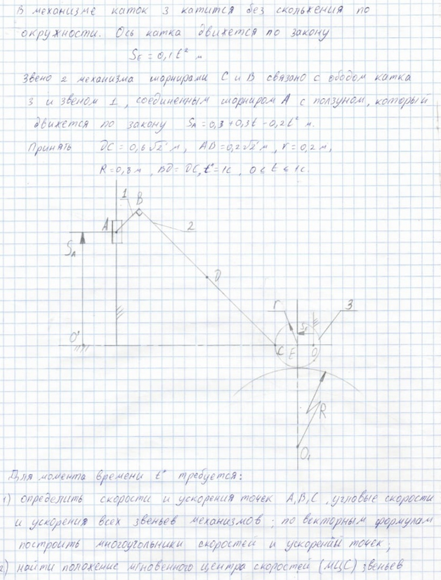 Типовой расчет по теоретической механике, "Кинематика плоского движения твердого тела", зачтено