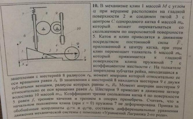 ДЗ 3: Уравнения Лагранжа 2-го рода вариант 10