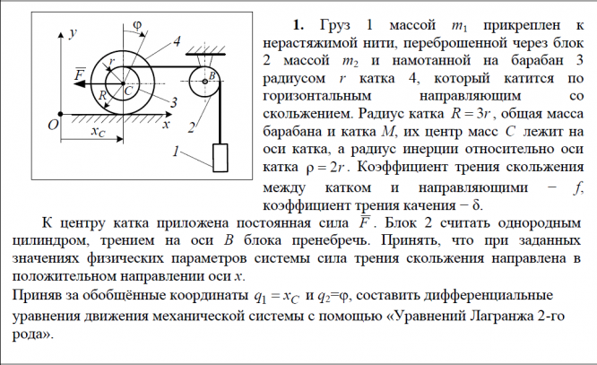 ДЗ 3: Уравнения Лагранжа 2-го рода вариант 1