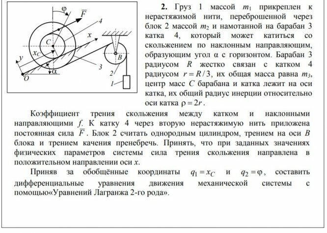 ДЗ 3: Уравнения Лагранжа 2-го рода вариант 2