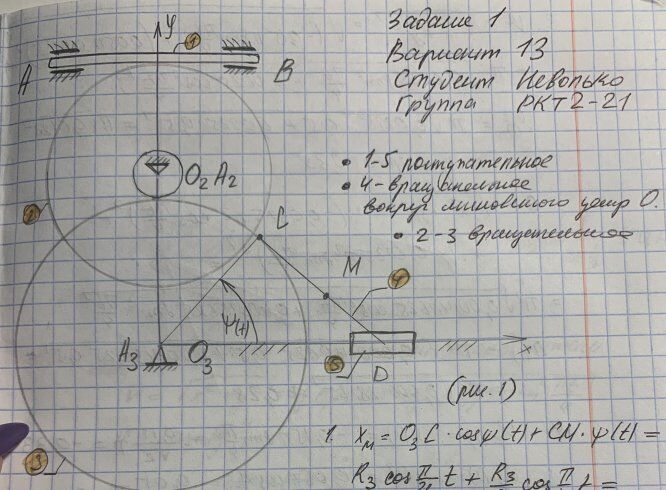 ДЗ 1: Кинематика точки и простейших движений твердого тела вариант 13