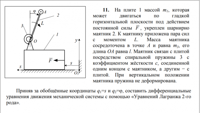 ДЗ 3: Уравнения Лагранжа 2-го рода вариант 11