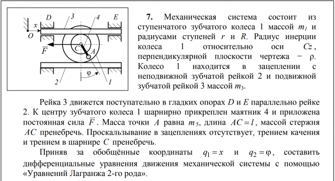 ДЗ 3: Уравнения Лагранжа 2-го рода вариант 7
