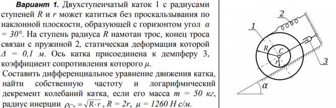 ДЗ 2: Колебания линейной системы с одной степенью свободы вариант 1