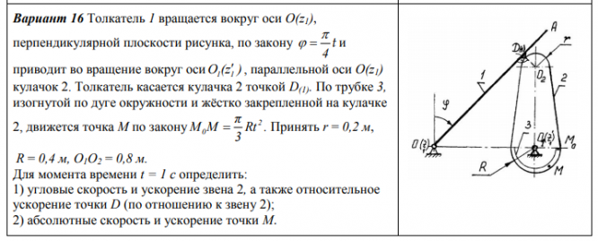 ДЗ 3: Кинематика сложного движения точки вариант 16