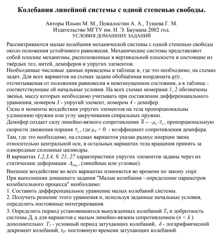 Для студентов МГТУ им. Н.Э.Баумана по предмету Теоретическая механикаКолебания линейной системы с одной степенью свободыКолебания линейной системы с одной степенью свободы
