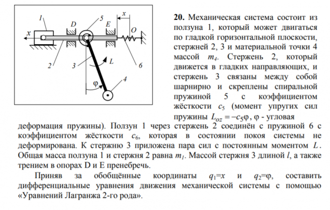 ДЗ 3: Уравнения Лагранжа 2-го рода вариант 20
