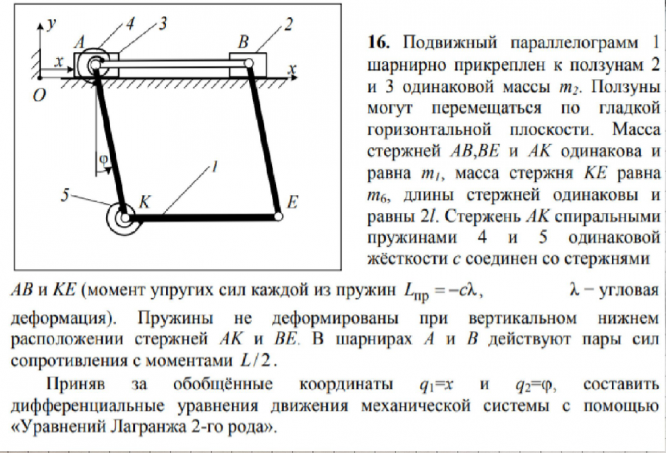 ДЗ 3: Уравнения Лагранжа 2-го рода вариант 16