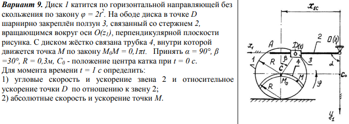 ДЗ 3: Кинематика сложного движения точки вариант 9