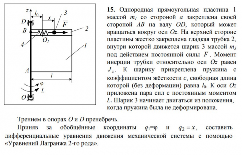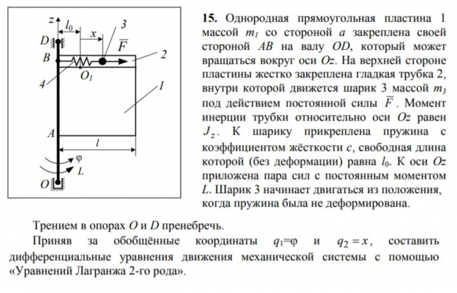 ДЗ 3: Уравнения Лагранжа 2-го рода вариант 15
