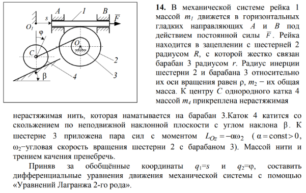 ДЗ 3: Уравнения Лагранжа 2-го рода вариант 14
