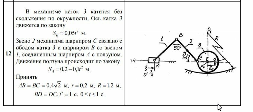 ДЗ 2: Кинематика плоского движения твердого тела вариант 12