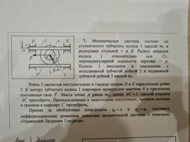 ДЗ 3: Уравнения Лагранжа 2-го рода вариант 7