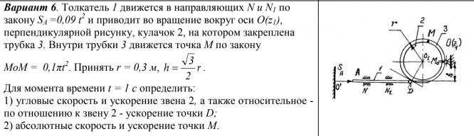 ДЗ 3: Кинематика сложного движения точки вариант 6
