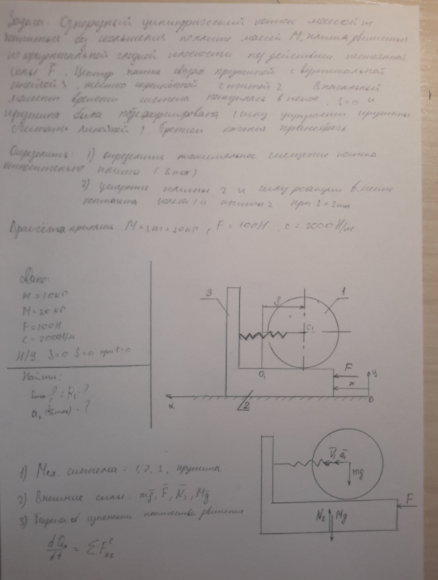 Типовой расчет по теоретической механике, "Общие теоремы динамики", зачтено